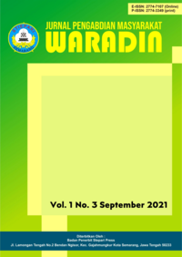 Vol. 1 No. 2 (2021)Jurnal Pengabdian Masyarakat Waradin, adalah jurnal yang menerbitkan artikel-artikel penelitian sebagai hasil pengabdian masyarakat yang telah memiliki Nomor E-ISSN: 2774-7107 (Online) / P-ISSN: 2774-3349 (print) diterbitkan oleh Sekolah Tinggi Ilmu Ekonomi Pariwisata Indonesia Semarang. Focus dan Scope pada bidang pendidikan, Hukum, Ekonomi, Humaniora, Teknik, Pertanian, Komunikasi, Kesehatan, dan Rekayasa. Jurnal Pengabdian Masyarakat Waradin memuat publikasi hasil kegiatan pengabdian masyarakat, model atau konsep dan atau implementasinya dalam rangka peningkatan partisipasi masyarakat dalam pembangunan, pemberdayaan masyarakat atau pelaksanaan pengabdian kepada masyarakat. Jurnal Pengabdian Masyarakat Waradinterbit 1 tahun 3 kali (Januari, Mei, September)